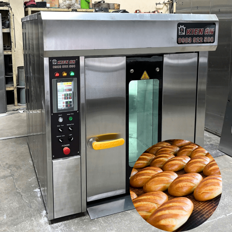 เตาอบแบบหมุน6ถาดพร้อมล้อลากด้านบนใช้ในโรงแรมเตาอบไอน้ำน้ำหนัก600กก. เตาอบเชิงพาณิชย์ผลิตในเวียดนาม