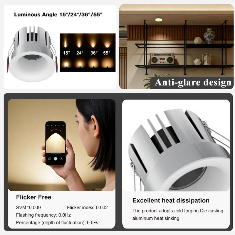 ไฟดาวน์ไลท์ LED ฝังฝ้าเพดานคุณภาพดี 7W 10W สมาร์ท CCT COB ปรับได้ ไร้ขอบ ป้องกันแสงสะท้อน Tuya SAA