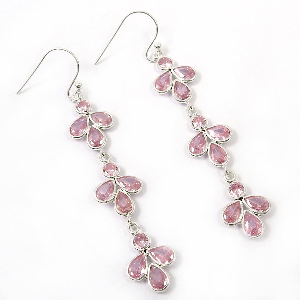 ต่างหู925เซอร์โคเนียสีชมพูเงินสเตอร์ลิงสำหรับเป็นของขวัญครบรอบเครื่องประดับแฮนด์เมดสำหรับภรรยา