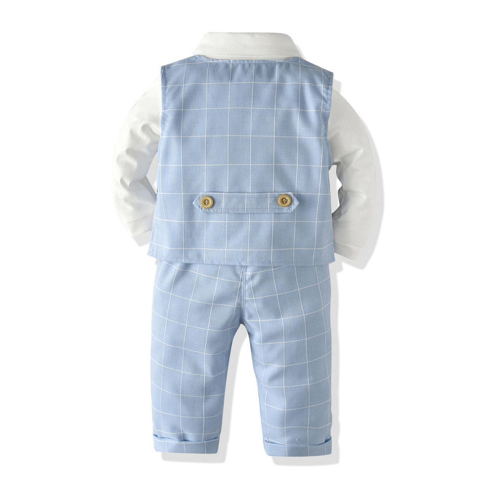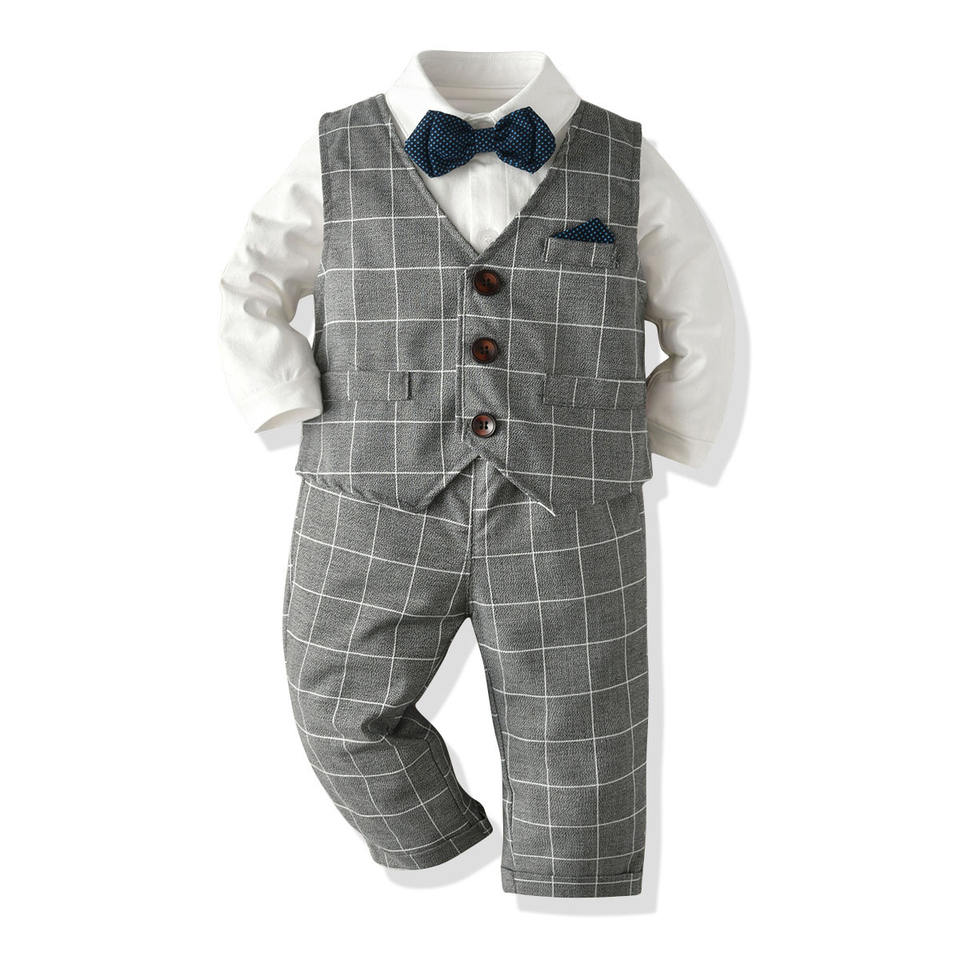 ชุดสูทเด็กผู้ชายคุณภาพดี ผ้าฝ้าย 95% พร้อมโบว์ผูก สำหรับงานพิธีการ