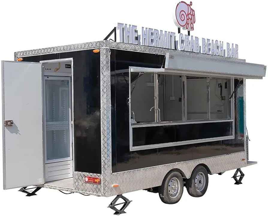 เครื่องพ่วงอาหารเคลื่อนที่สำหรับขายปลีกขนมขบเคี้ยวผลิตภัณฑ์นมขนมฮอทด็อกทำจากบาร์บีคิวทำจากข้าวโพด