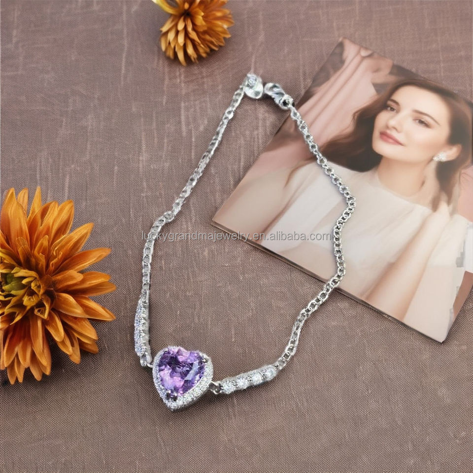 สร้อยข้อมือรูปหัวใจอเมทิสต์เครื่องประดับวัสดุหลัก