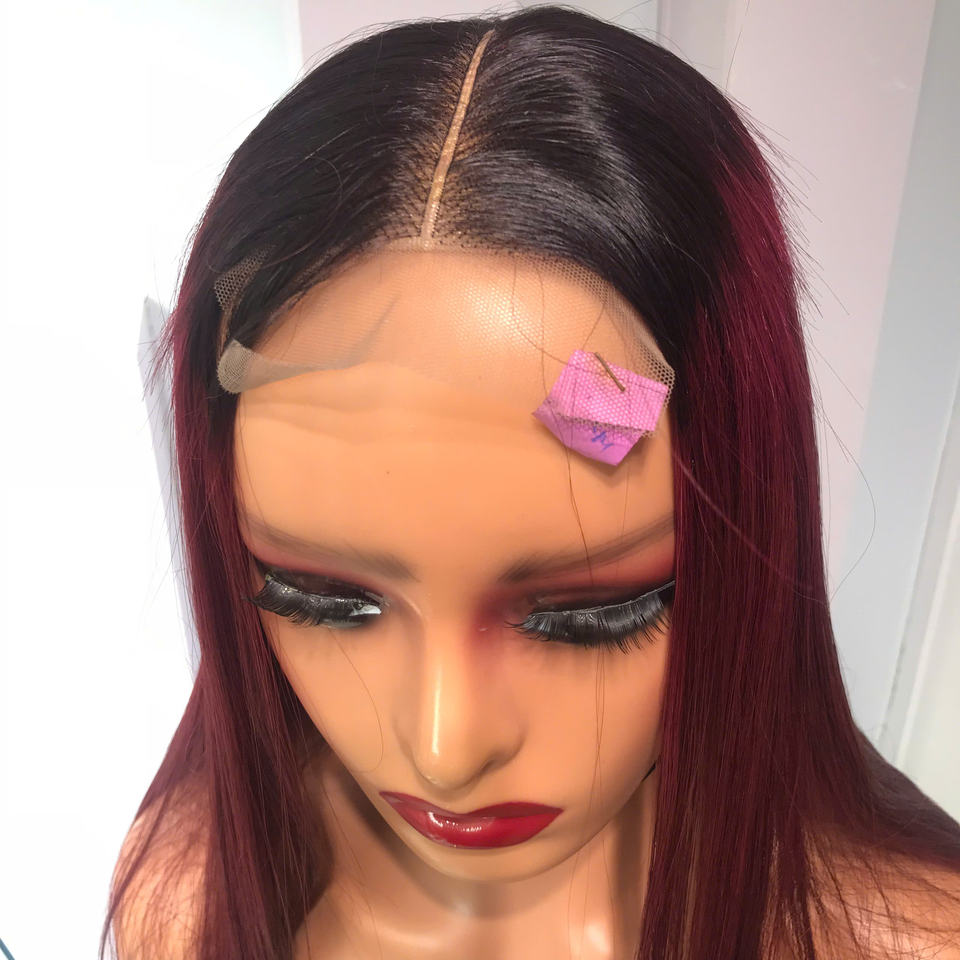 วิกผมทรงตรงยาวตรงลูกไม้โปร่งแสงสีเบอร์กันดีผมมนุษย์จากเวียดนาม