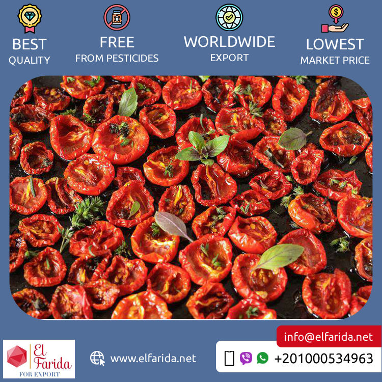 มะเขือเทศตากแดดธรรมชาติแสนอร่อยแบ่งครึ่งชิ้นและผงจากแหล่งกำเนิดของอียิปต์