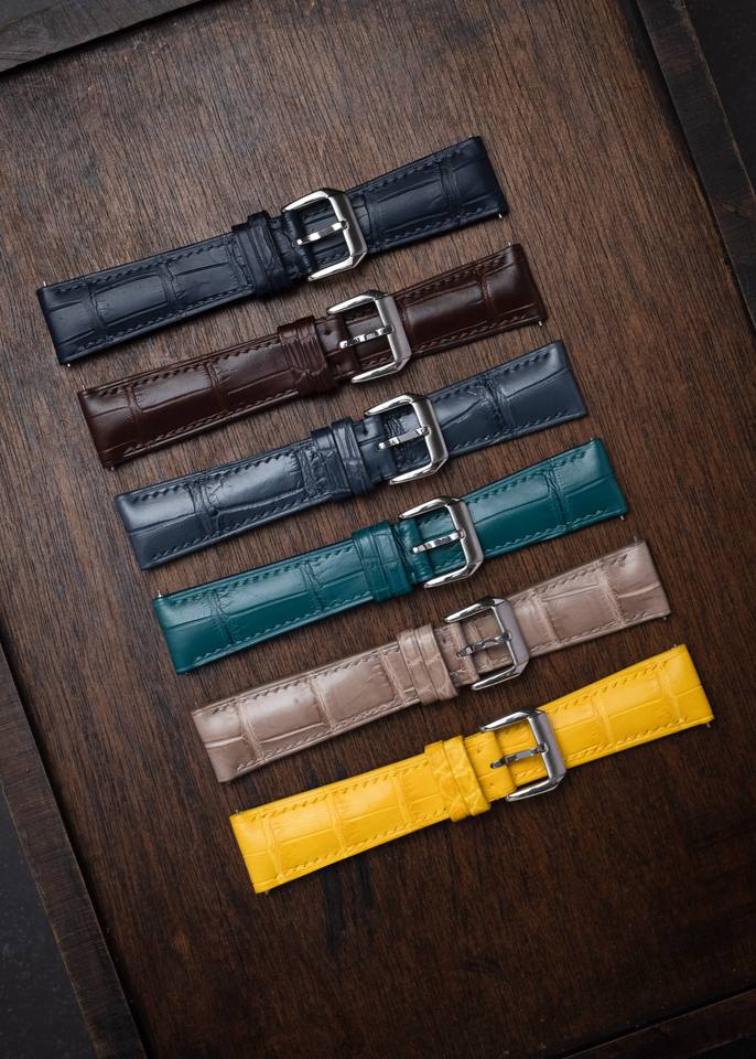 สายนาฬิกาจระเข้สีดำคุณภาพดีสายนาฬิกาทำมือส่งออกจากโรงงานเวียดนาม