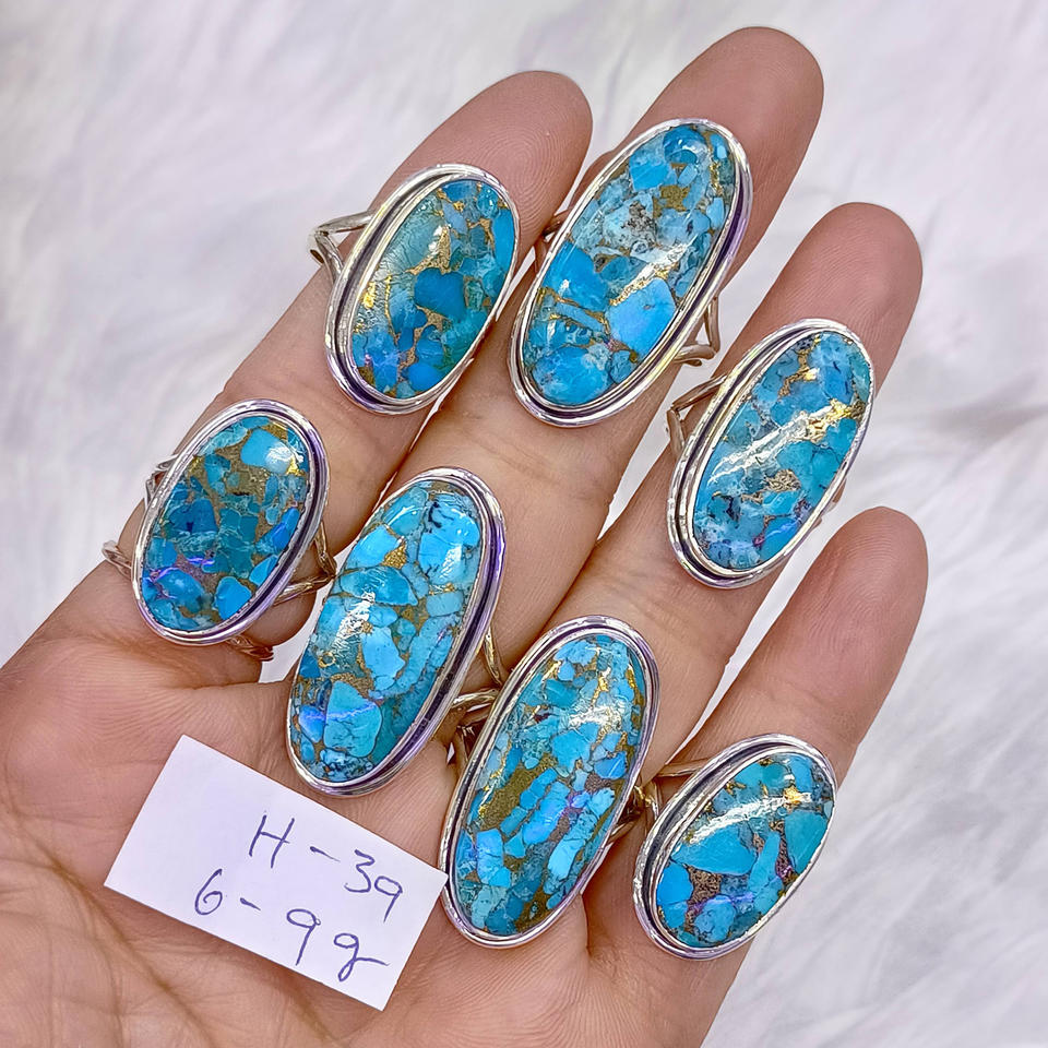 แหวนเงินแท้ประดับอัญมณีสีฟ้าทองแดงสีเทอร์ควอยซ์เป็นของขวัญสำหรับผู้หญิง