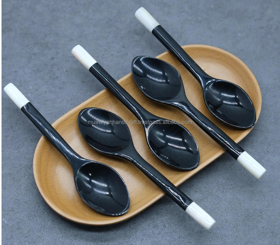 ช้อนเขาควายช้อนช้อนแบบแบนสีธรรมชาติ