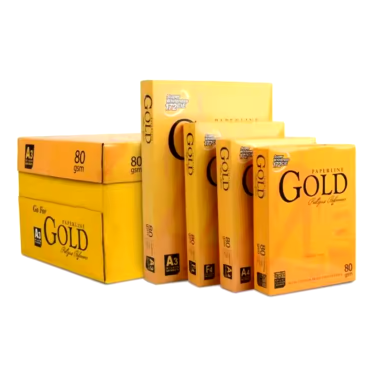กระดาษถ่ายเอกสารคุณภาพดี ราคาถูก 80 แกรม ยี่ห้อ Paperline / Paperbase สีทอง ขนาด A4 สำหรับขาย