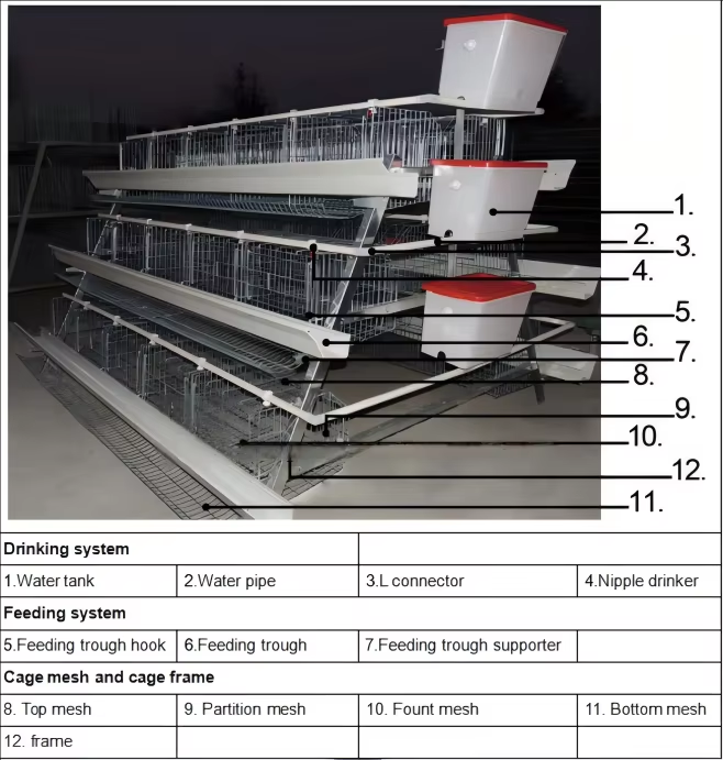 กรงไก่เชิงพาณิชย์แบบใช้แบตเตอรี่อัตโนมัติกรงไก่สำหรับฟาร์มผลิตไข่แบบแอฟริกัน