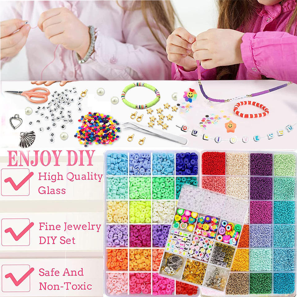 ชุดอุปกรณ์เสริมลูกปัดอะคริลิคสำหรับเด็กชุดของเล่นเพื่อการศึกษาสำหรับทำสร้อยข้อมือสร้อยคอเครื่องประดับงานตามสั่ง