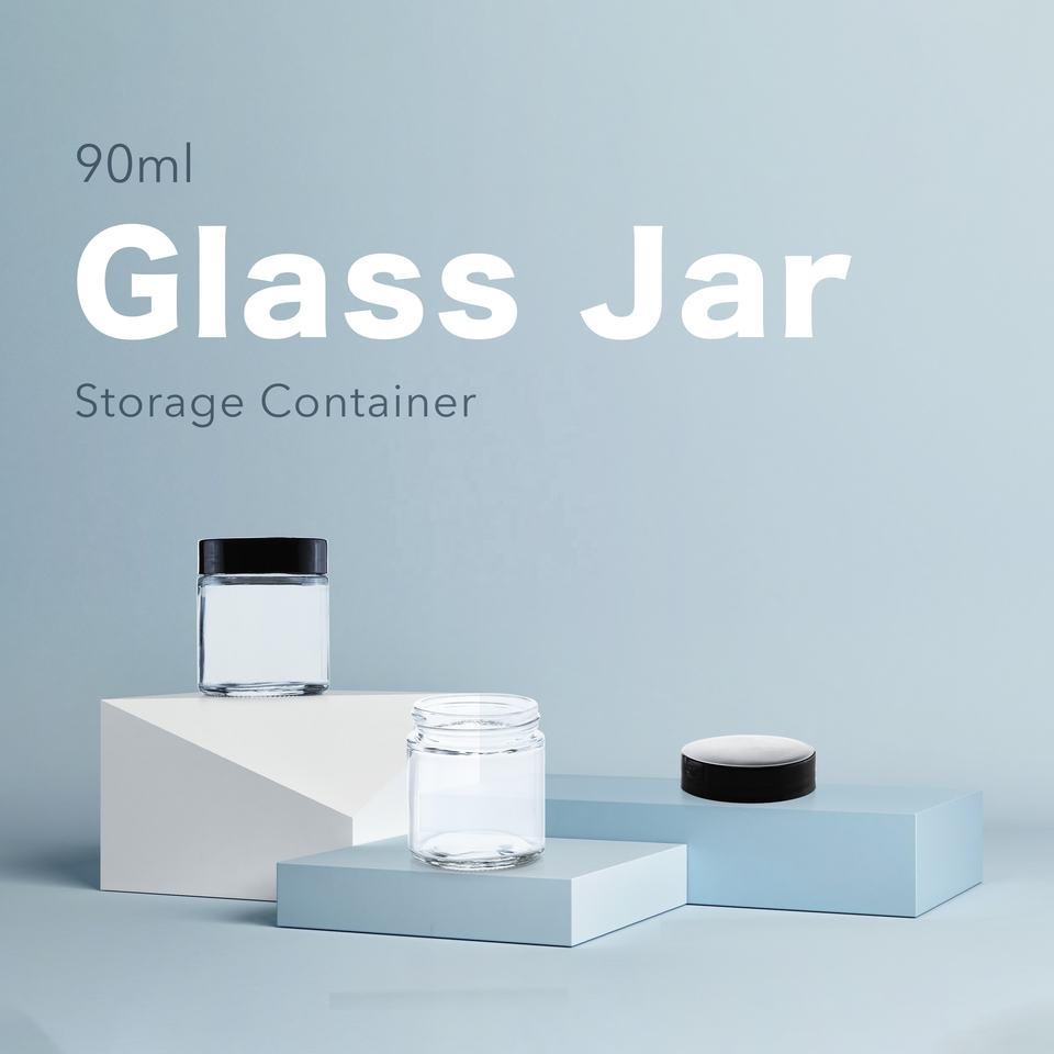 โหลแก้วฝากลมสำหรับใส่อาหารและสกินแคร์ขวดแก้วสำหรับใส่อาหารขนาด3.04ออนซ์90มล. ออกแบบได้ตามต้องการ