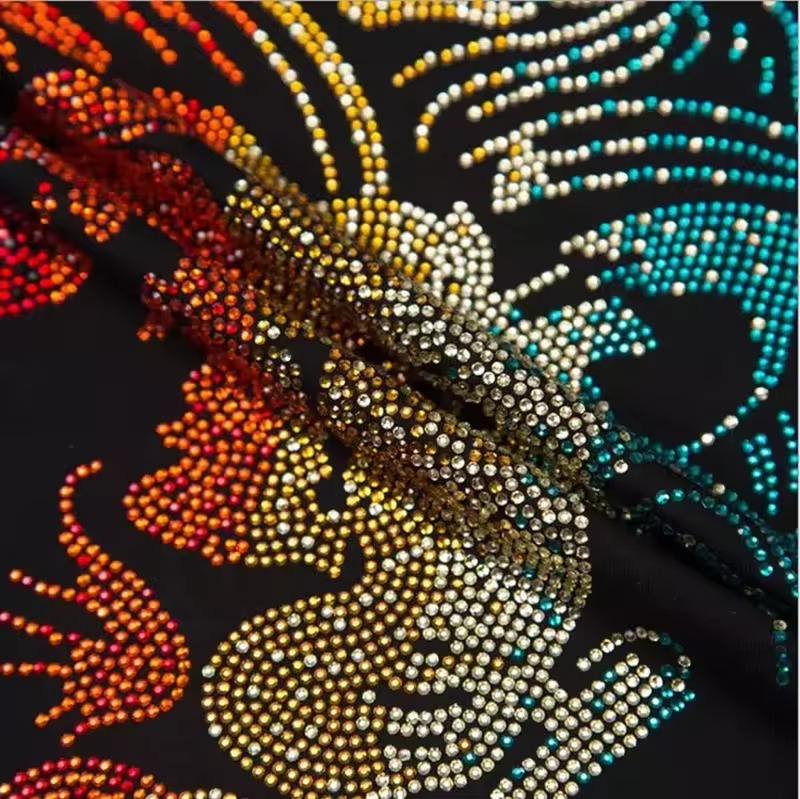 คุณภาพดีที่กําหนดเองเงินมุก Rhinestones การออกแบบ O-คอแบบแบนพร้อมกาวเสื้อยืดและเสื้อผ้าที่ทําจากคริสตัล