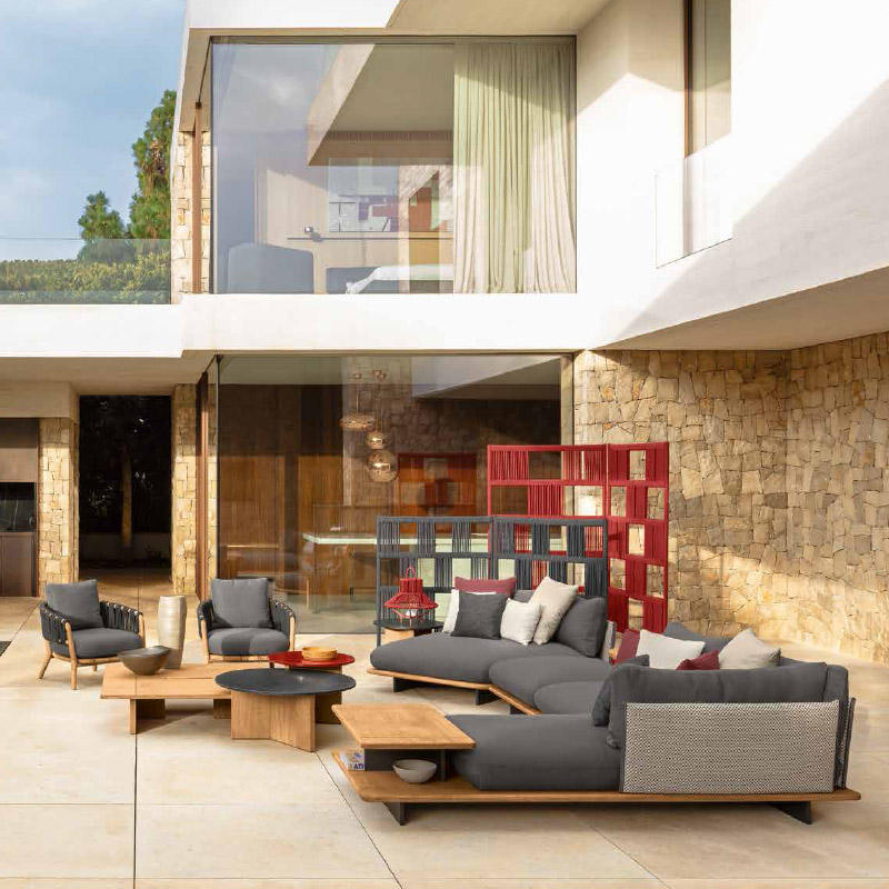 ชุดโซฟาไม้สักสำหรับลานบ้านกลางแจ้งทำจากเชือกทอในสวน