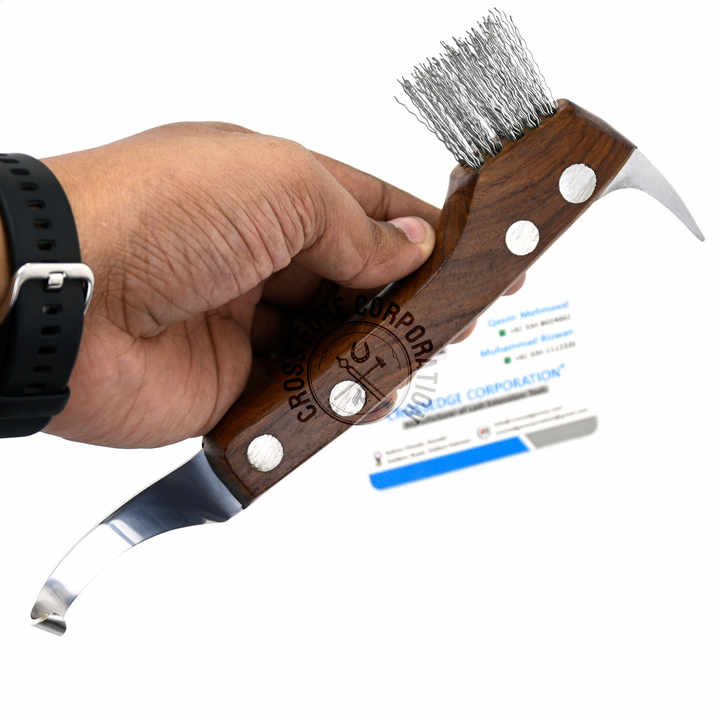 มีดฮูฟฟอร์มีคุณภาพดีมีตะขอคมและกีบม้าสำหรับเครื่องมือแปรงกำจัดโคลนด้ามไม้