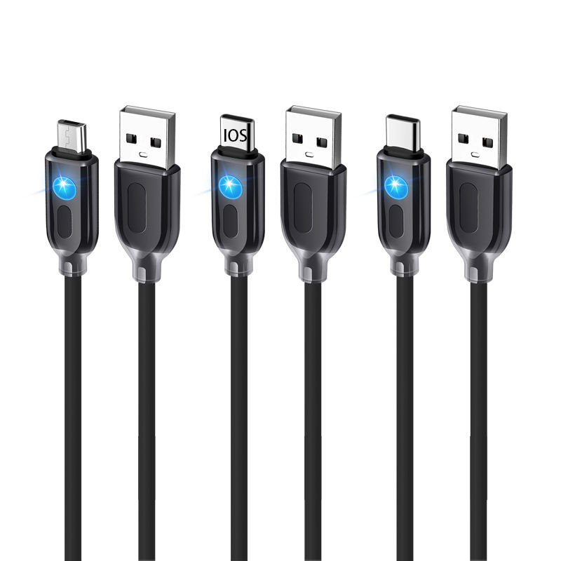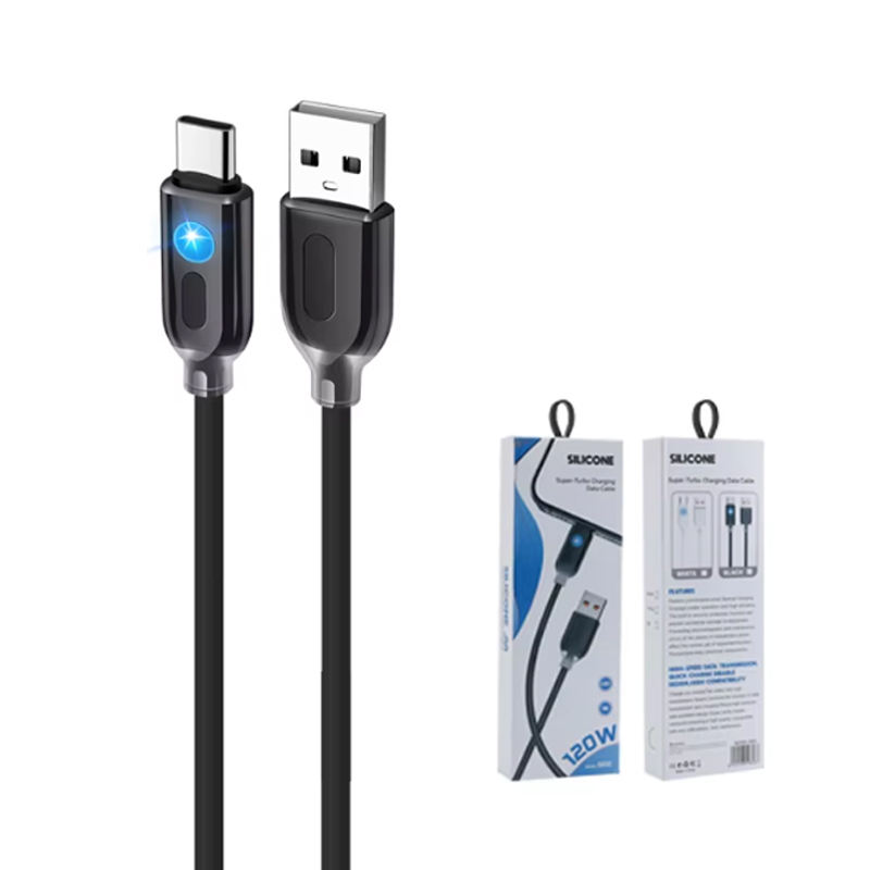 สายชาร์จเร็วคุณภาพดี USB C พร้อมไฟ LED 120W สำหรับโทรศัพท์ Android Samsung