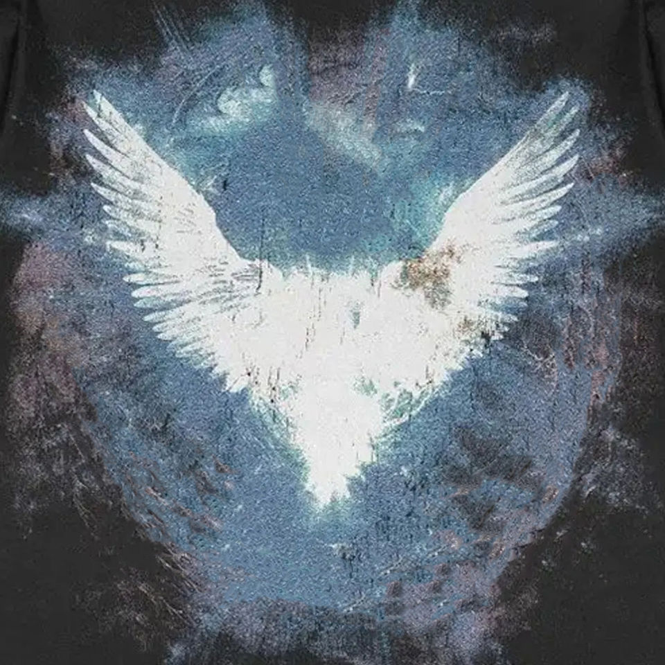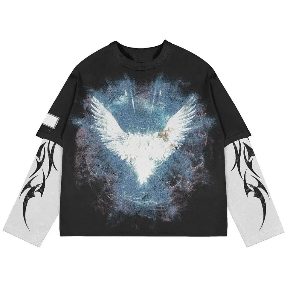 เสื้อยืดโอเวอร์ไซส์ลายกราฟิกผู้ชาย แขนยาว สไตล์สตรีทแวร์ พิมพ์ลายเทวดา ผ้าฝ้าย ลำลอง แฟชั่น ทันสมัย สไตล์คนเมือง