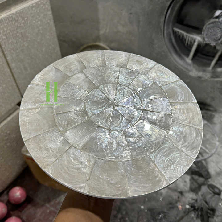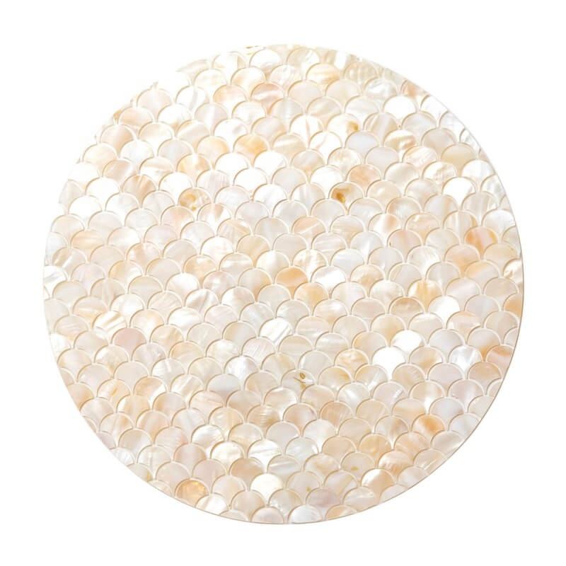 แผ่นรองจานทรงกลมคุณภาพดีระดับไฮเอนด์ สีเบจเงา ประดับมุก งานฝีมือจากเวียดนาม