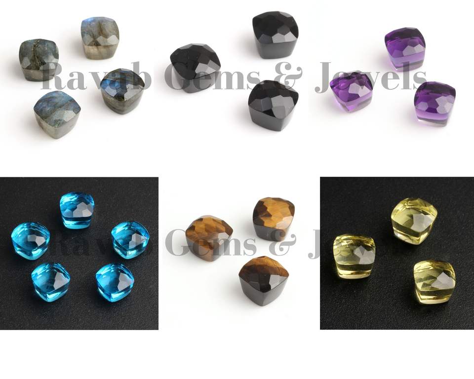Product Name:Swiss Blue Topaz Quartz Faceted Cushion Cut Briolette Loose Gemstone