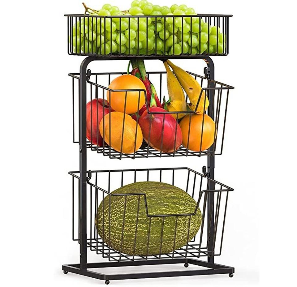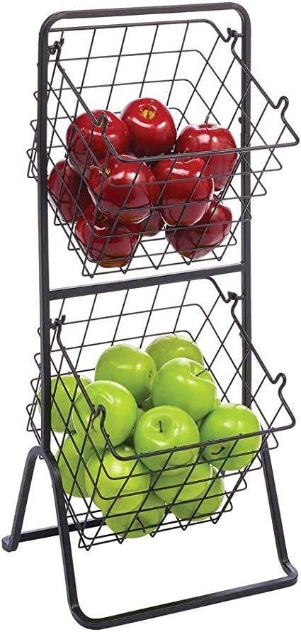 ชั้นวางผลไม้เหล็กคุณภาพดีเคลือบสีฝุ่นและเคลือบสีสันสดใส ดีไซน์ตะกร้า 2 ชั้น สำหรับวางบนเคาน์เตอร์
