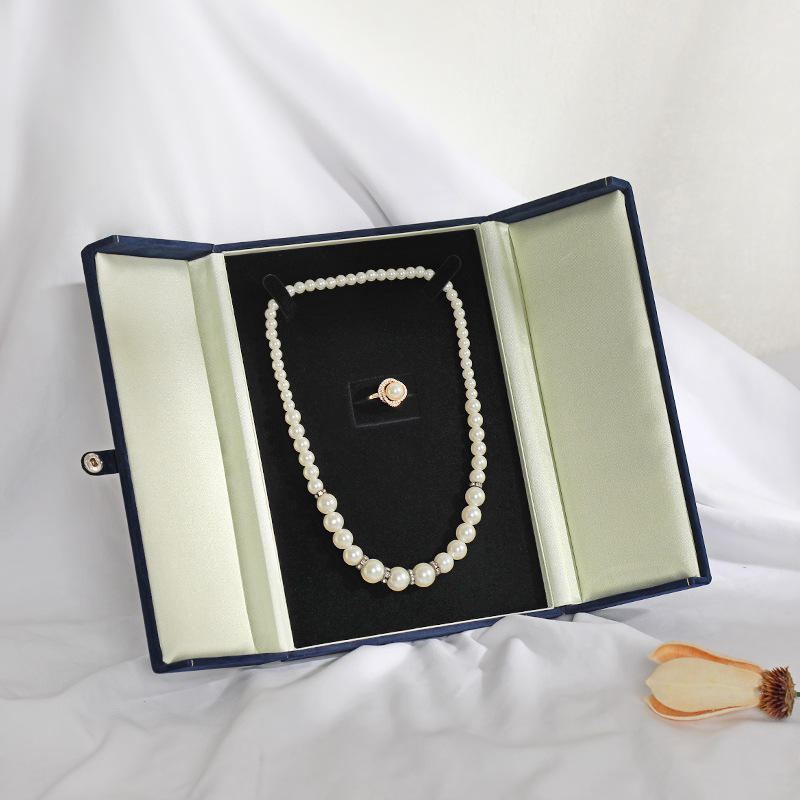 กล่องเก็บเครื่องประดับแบบปุ่มเปิดคู่กล่องใส่เครื่องประดับกำมะหยี่