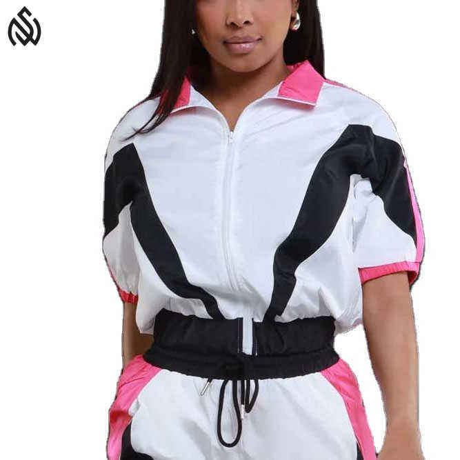 ชุดกีฬากันลมพิมพ์ลายโลโก้ของผู้หญิงชุดวอร์มสำหรับผู้หญิงชุดกีฬากันลมดีไซน์ใหม่