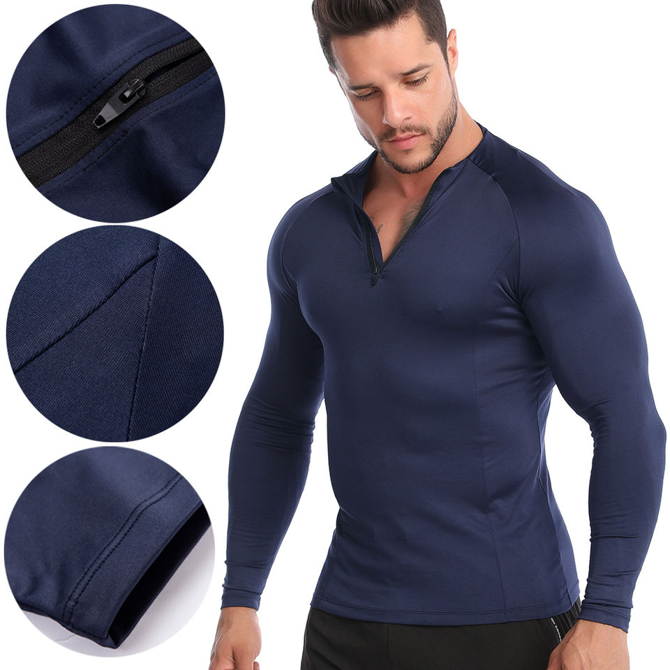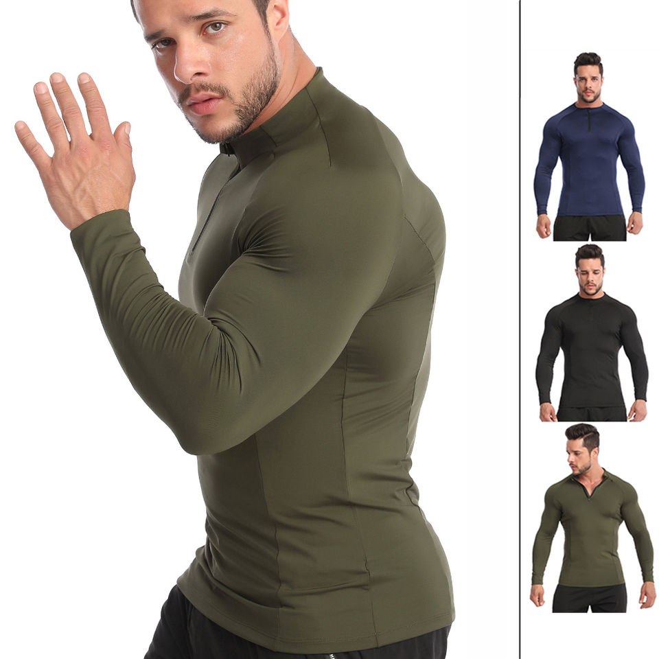 เสื้อรัดกล้ามเนื้อแขนยาวสำหรับผู้ชายเสื้อกีฬาออกกำลังกายวิ่งออกกำลังกาย
