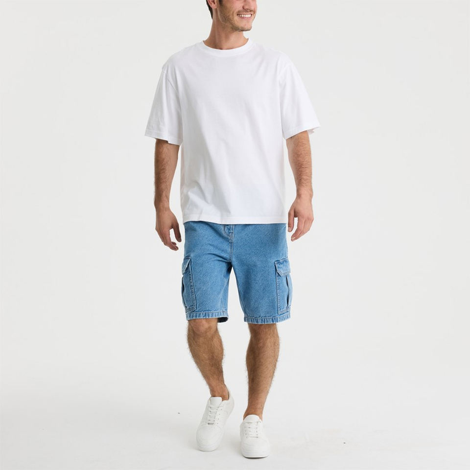 กางเกงยีนส์ขาสั้นผู้ชายคุณภาพดี สำหรับฤดูร้อน เป็นมิตรกับสิ่งแวดล้อม ระบายอากาศได้ดี ทรงหลวม น้ำหนักเบา สไตล์ลำลอง มีกระเป๋าหน้าและหลัง