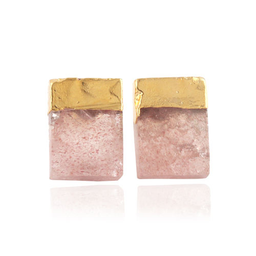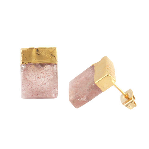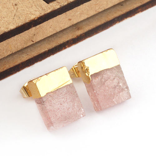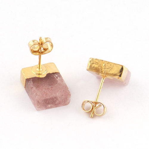 ต่างหูเม็ดเดี่ยวระบบควอทซ์เชอร์รี่ธรรมชาติทรงสี่เหลี่ยมผืนผ้า24K,ต่างหูแบบแป้นกดชุบทองครึ่งเดียวเครื่องประดับ