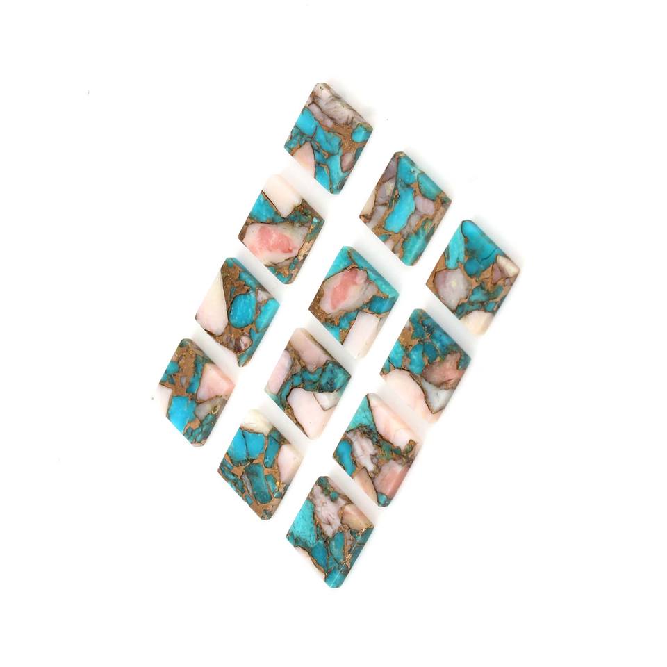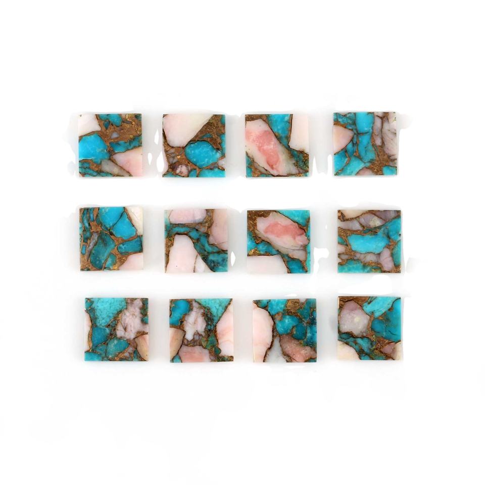 Product Name:Natural Pink Opal Copper Turquoise 12 MM Square Shape Loose Gemstone