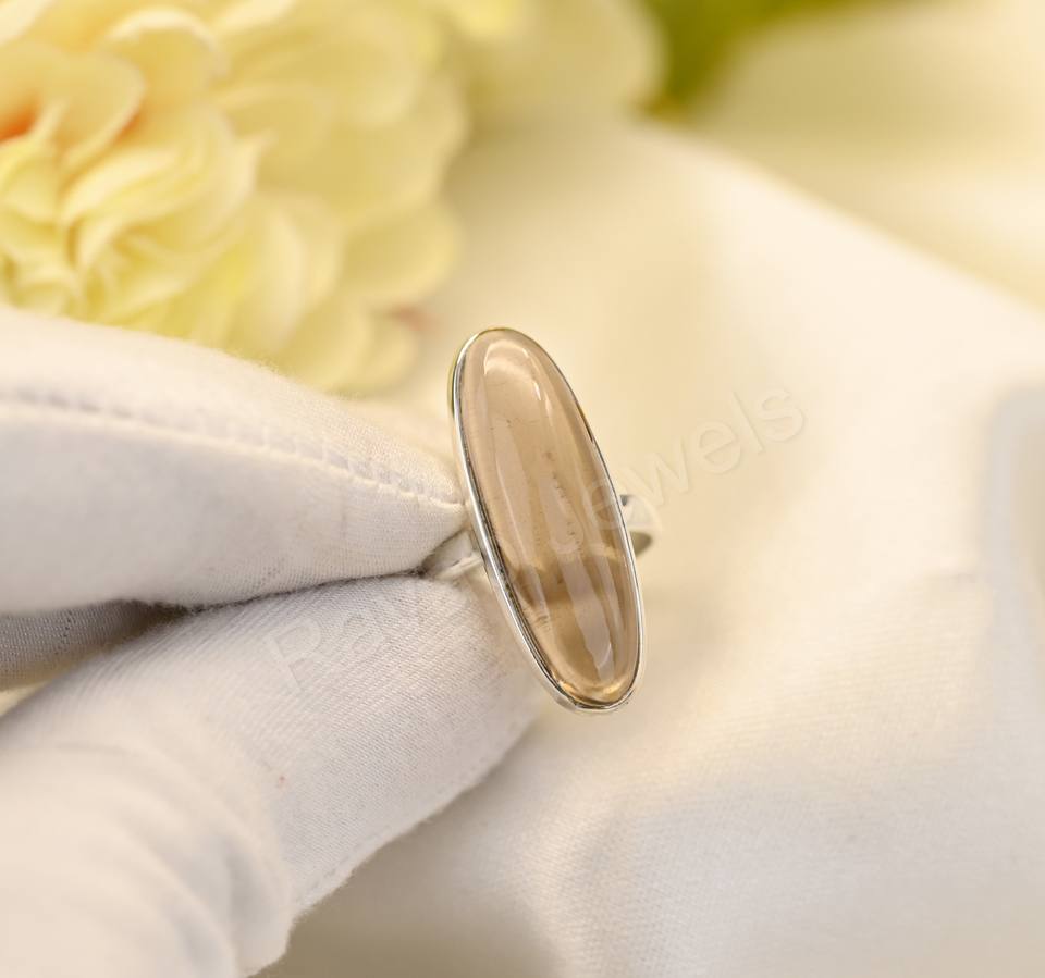 Product name:925 Sterling Silver Gemstone Smocky Quartz Ring