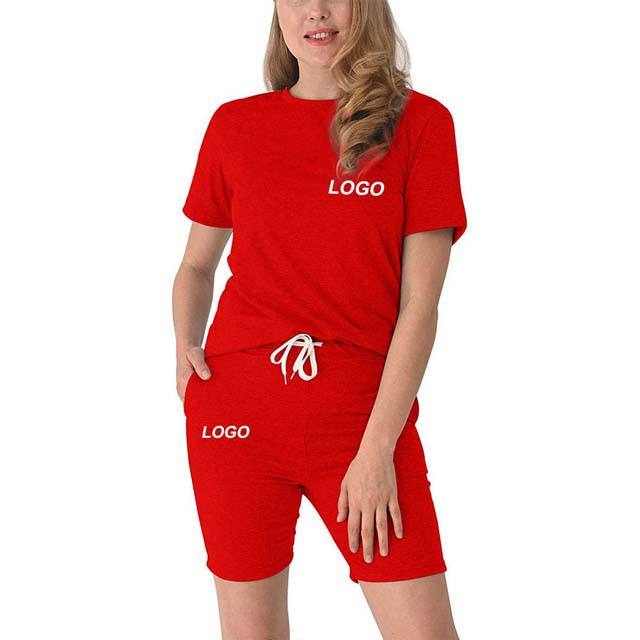 เสื้อยืดและกางเกงขาสั้นสำหรับผู้หญิงชุดเสื้อผ้าผ้าฝ้ายสองชิ้นสำหรับผู้หญิงสินค้ามาใหม่