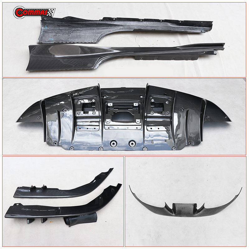 ชุดแต่งตัวถังรถยนต์คาร์บอนไฟเบอร์แห้งคุณภาพดีสไตล์ OEM สำหรับ Ferrari F8 ประกอบด้วยสเกิร์ตข้างแบบพันรอบด้านหน้า ดิฟฟิวเซอร์หลัง และลิปสเกิร์ต