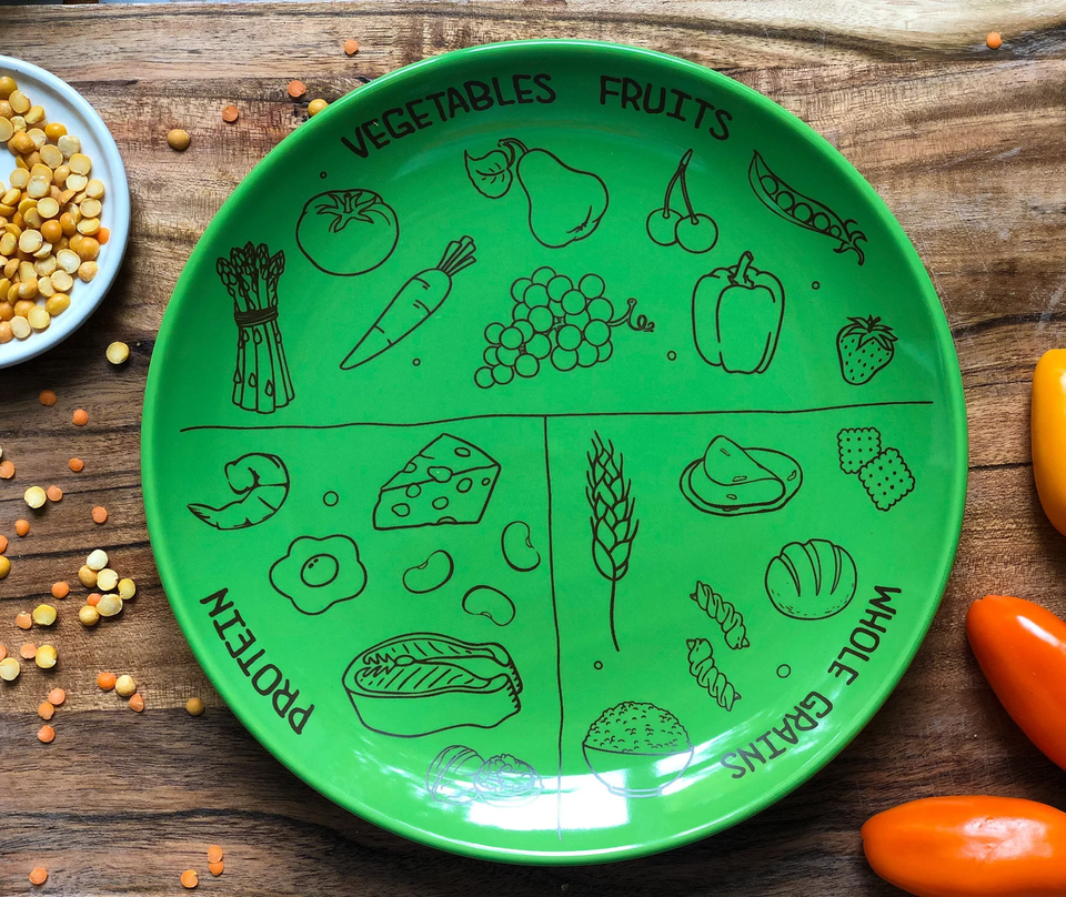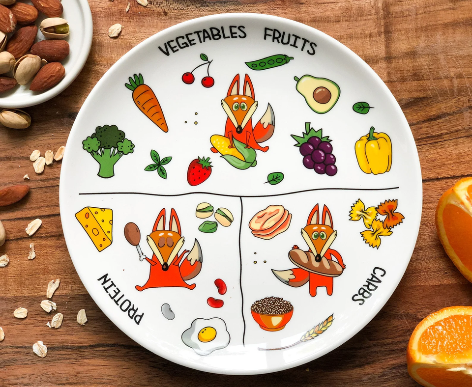จานควบคุมส่วนพอร์ซเลนคุณภาพดีจานอาหารเพื่อสุขภาพให้บริการคำแนะนำในการเรียนรู้เพิ่มเติมเกี่ยวกับโภชนาการ
