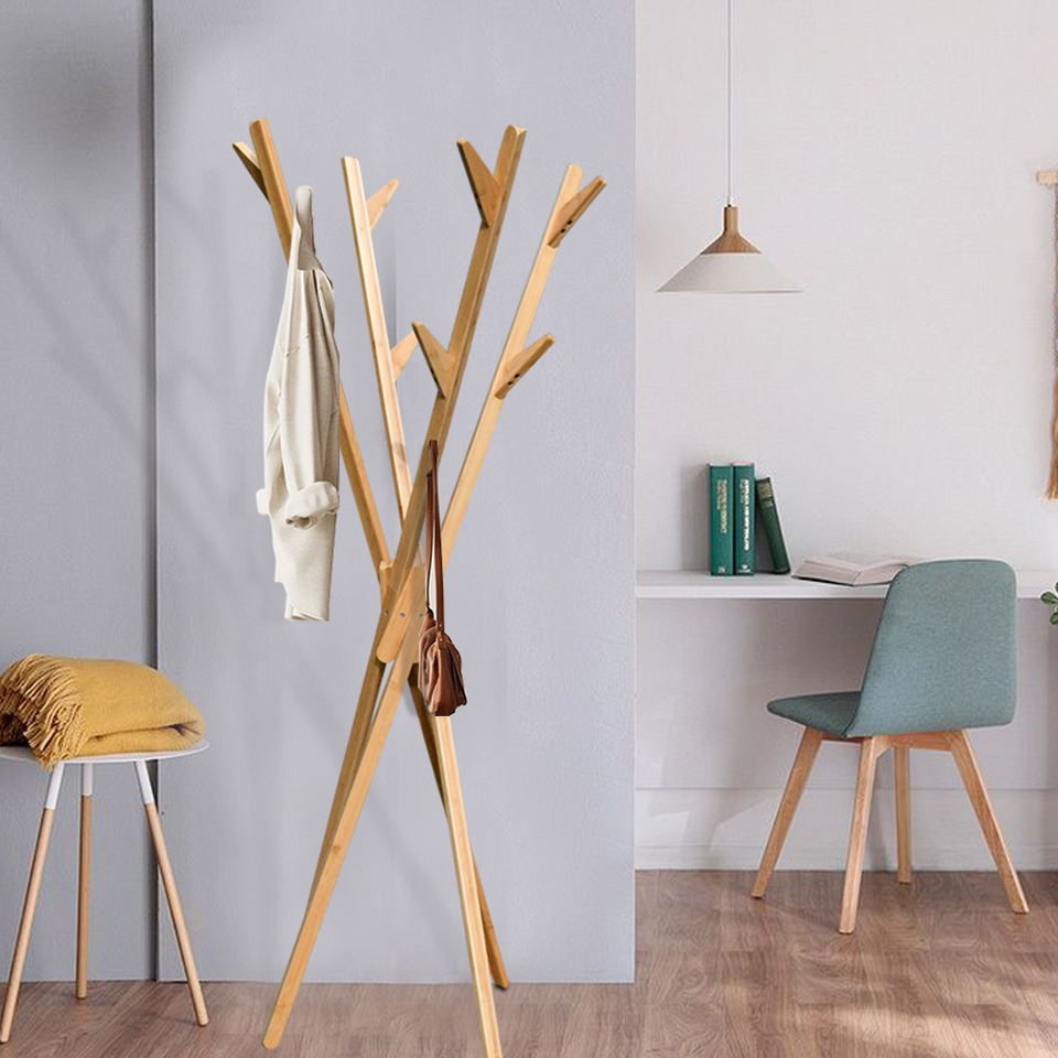 ชั้นแขวนเสื้อโค้ทไม้ไผ่สำหรับแขวนผ้าทำจากไม้ไผ่หรูหราอเนกประสงค์ปรับได้