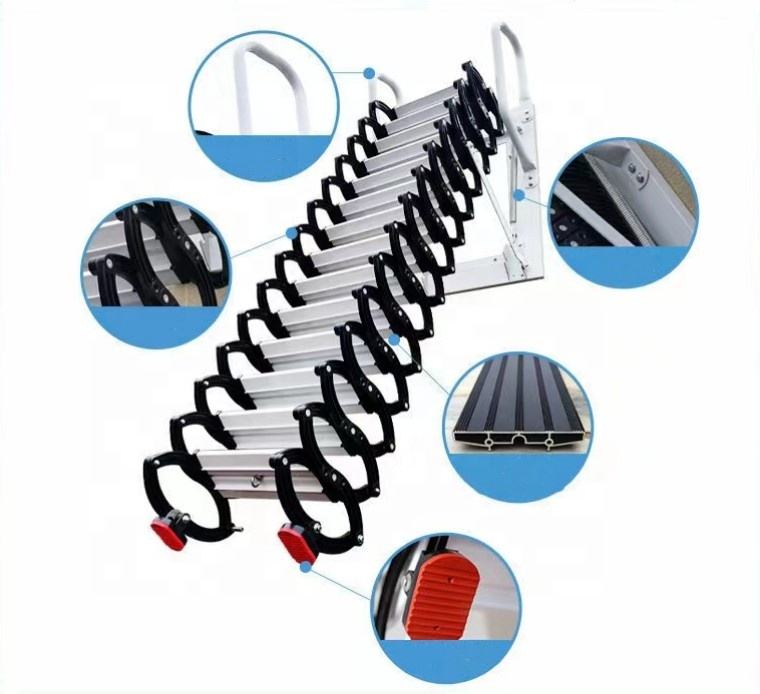 บันไดพับเก็บได้คุณภาพดี บันไดไฟฟ้าสำหรับห้องใต้หลังคา บันไดพับได้ บันไดไม้/บันไดใช้ในบ้าน