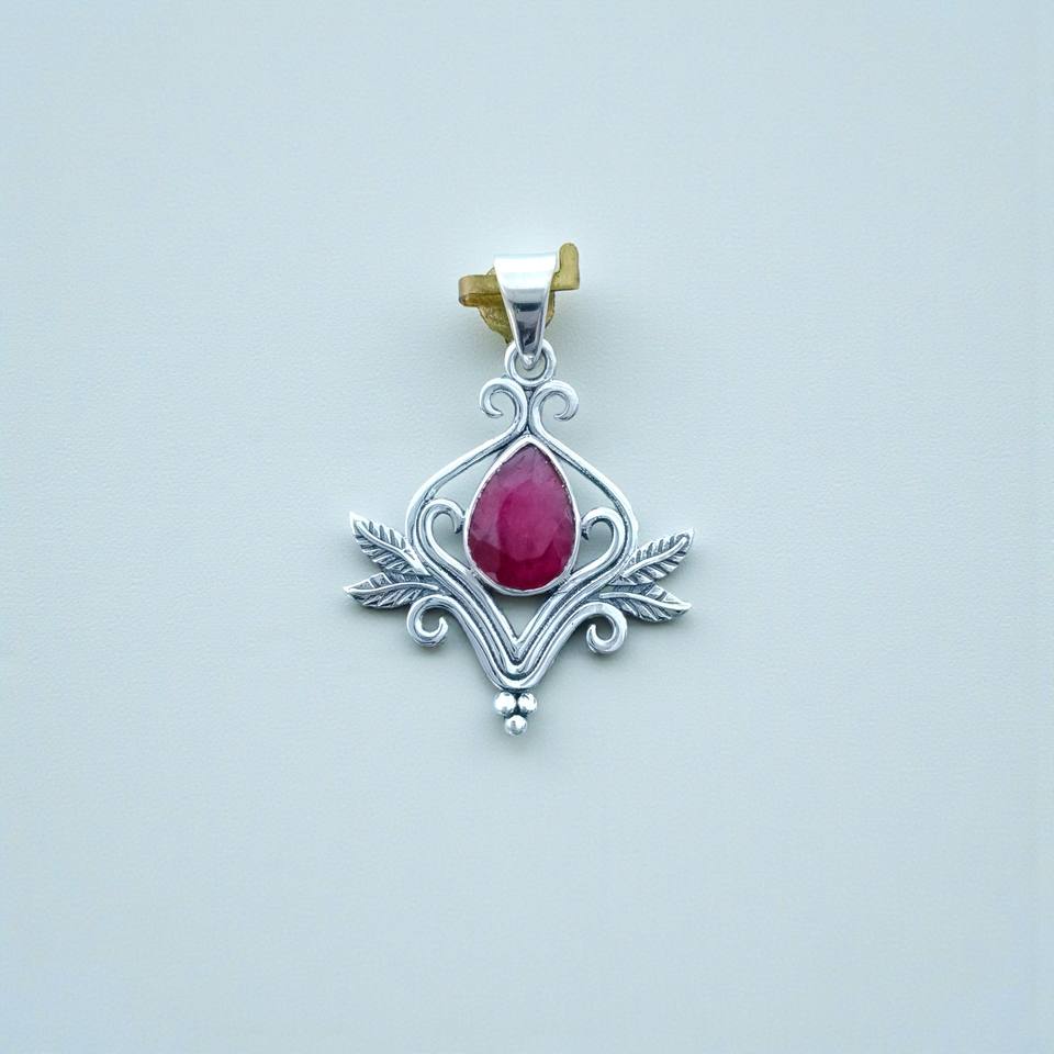 จี้พลอยทับทิมคุณภาพดีในตัวเรือนเงินแท้ 925 ราคาขายส่ง เครื่องประดับเงินแท้