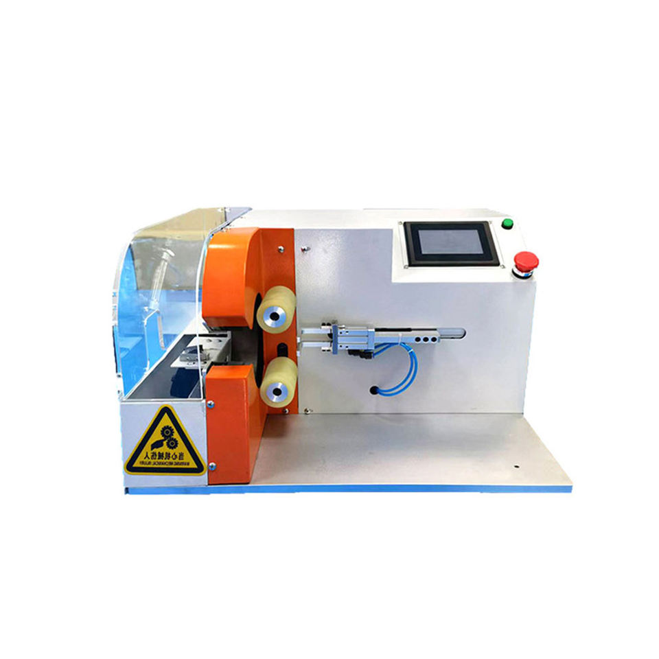 เครื่องตัดม้วนเทปพีวีซีแบบหมุนบนโต๊ะกึ่งอัตโนมัติสำหรับสายเคเบิลและสายไฟ