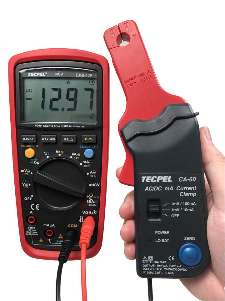 มัลติมิเตอร์ดิจิตอลแบบพกพา TECPEL CA-60 คุณภาพดี 0-60A พร้อมคลิปหนีบวัดกระแสไฟฟ้า ความไวสูง สำหรับส่งออก