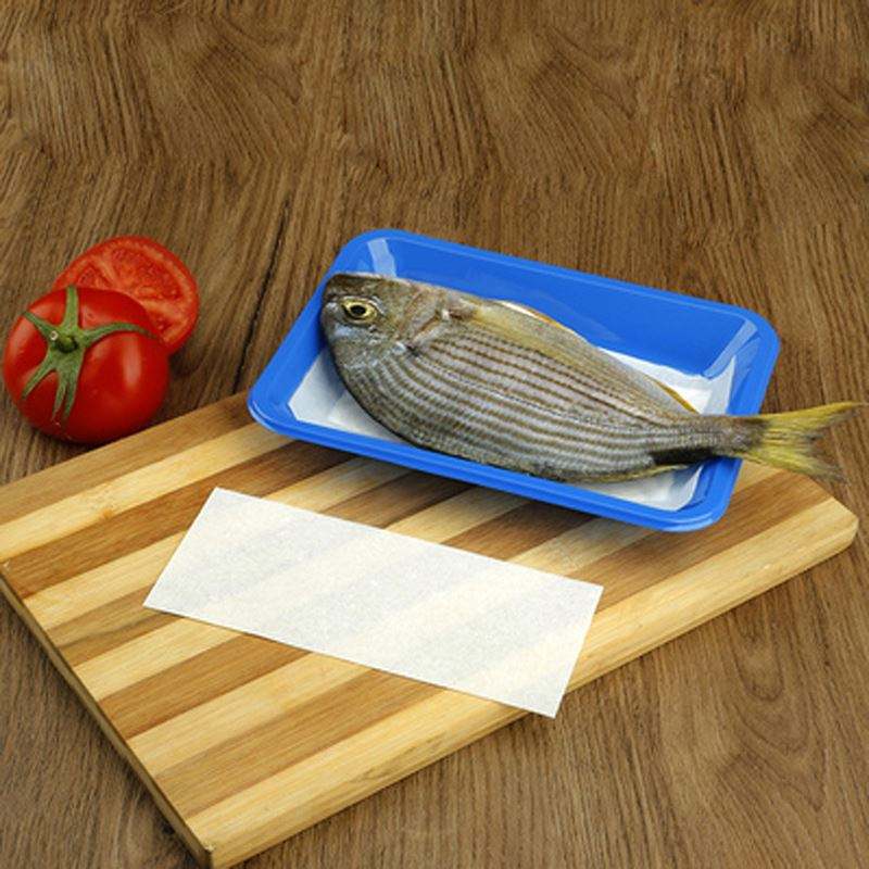 ถาดคุณภาพดี ซึมซับน้ำได้ดี สำหรับปลาสด แผ่นรองเนื้อ 160*80 มม.