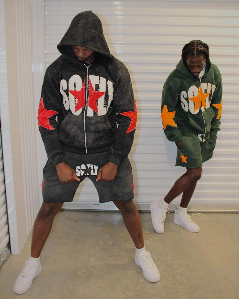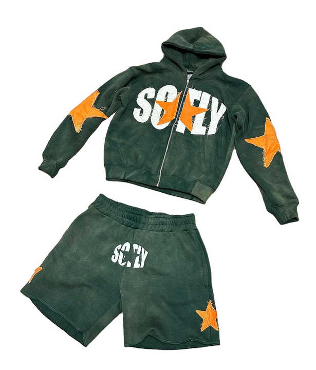 ชุดเซ็ตเสื้อฮู้ดแขนสั้นผู้ชาย
