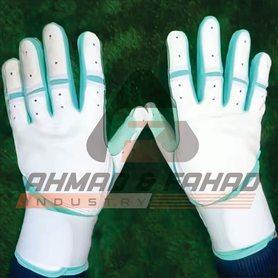 ถุงมือเบสบอลเล่นซอฟต์บอลหนังสำหรับผู้ชายถุงมือกีฬาเบสบอลสีฟ้าระบายอากาศได้ดี