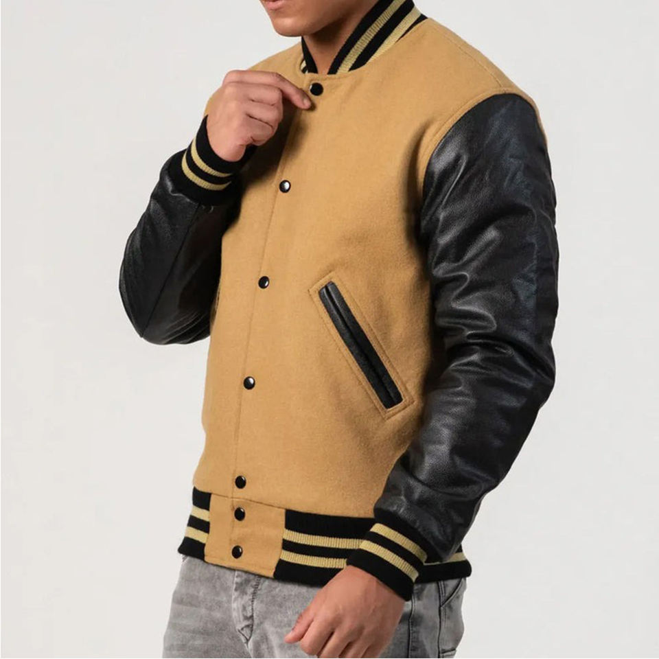 แจ็คเก็ตเบสบอลทรงสลิมฟิตคุณภาพดี ขายส่ง แจ็คเก็ตวาร์ซิตี้ แขนหนังปลา แจ็คเก็ตวาร์ซิตี้แบบสั่งทำสำหรับผู้ชาย