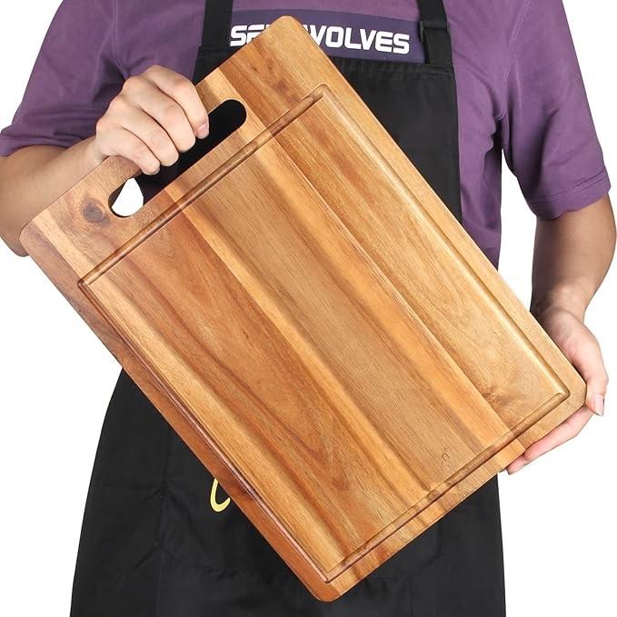 เขียงไม้เนื้อแข็งทำด้วยมือพร้อมพื้นผิวเรียบสำหรับเชฟมืออาชีพและการปรุงอาหารที่บ้าน
