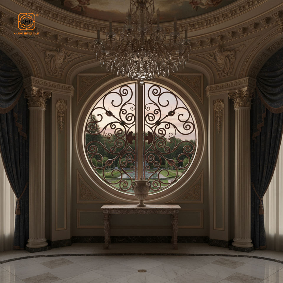 หน้าต่างเหล็กดัดคุณภาพดี KHP สไตล์ฝรั่งเศสสมัยใหม่ ป้องกันการโจรกรรม งานฝีมือประณีต รายละเอียดสวยงาม กันน้ำ เหมาะสำหรับโรงแรมและห้องครัว