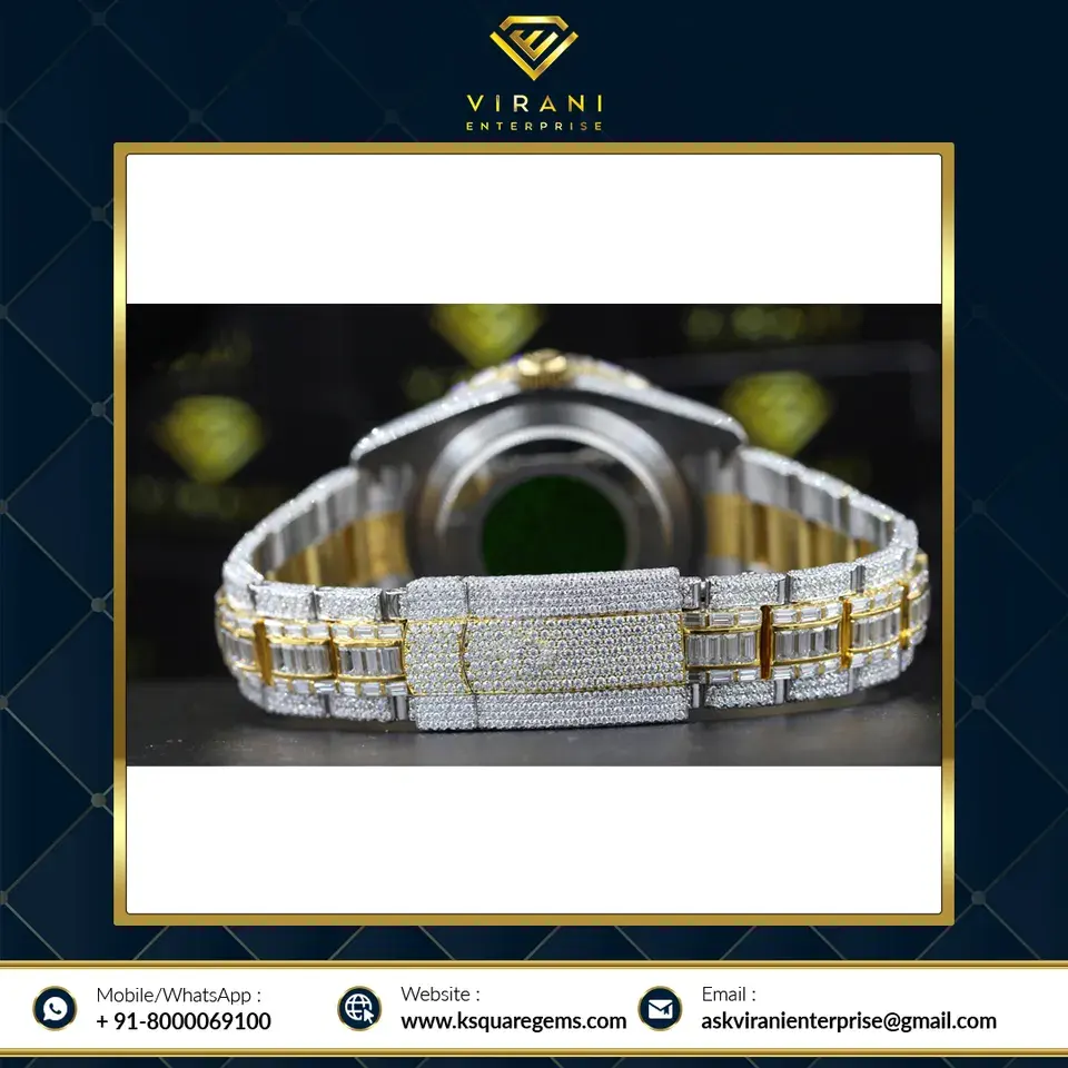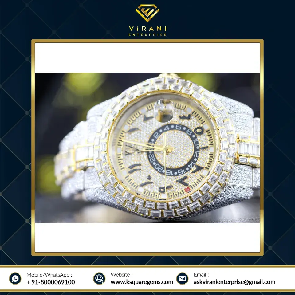 นาฬิกาสแตนเลสสตีลสไตล์ย้อนยุคหน้าปัดสีเหลืองประดับเพชร
