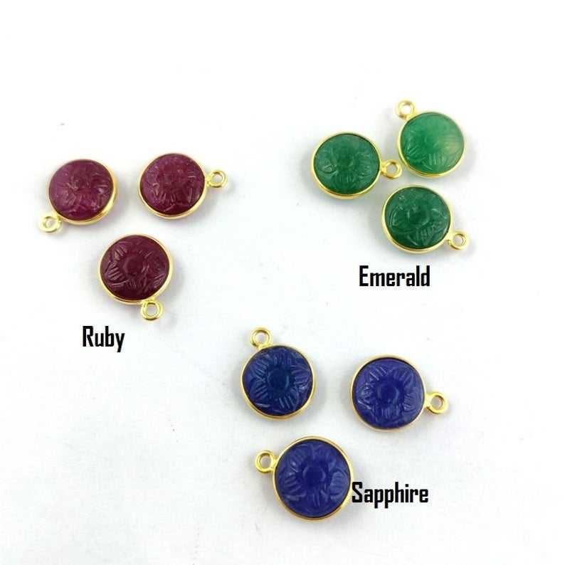 Qualty ทับทิมแกะสลักดอกไม้ออกแบบจี้ฝา,ทรงกลมชุบทองเสน่ห์จี้