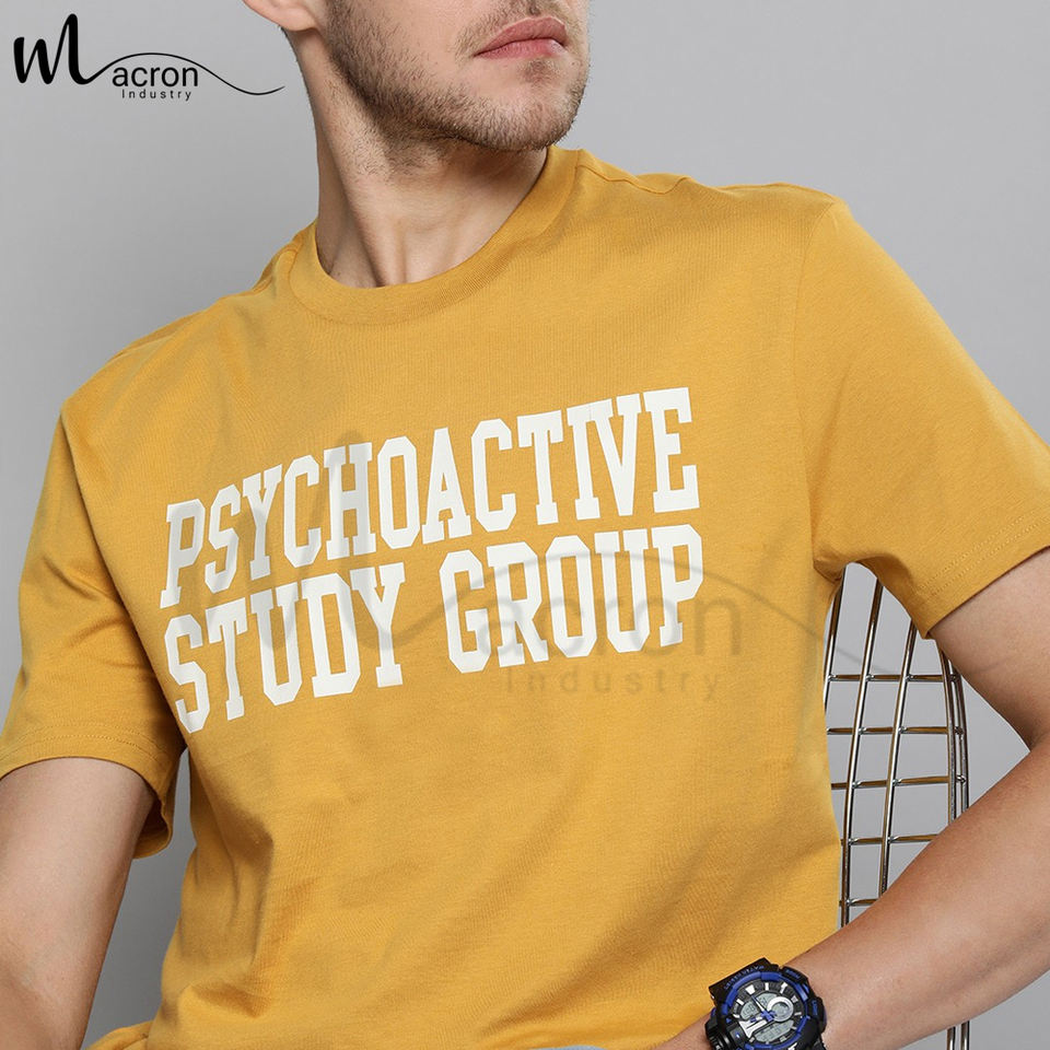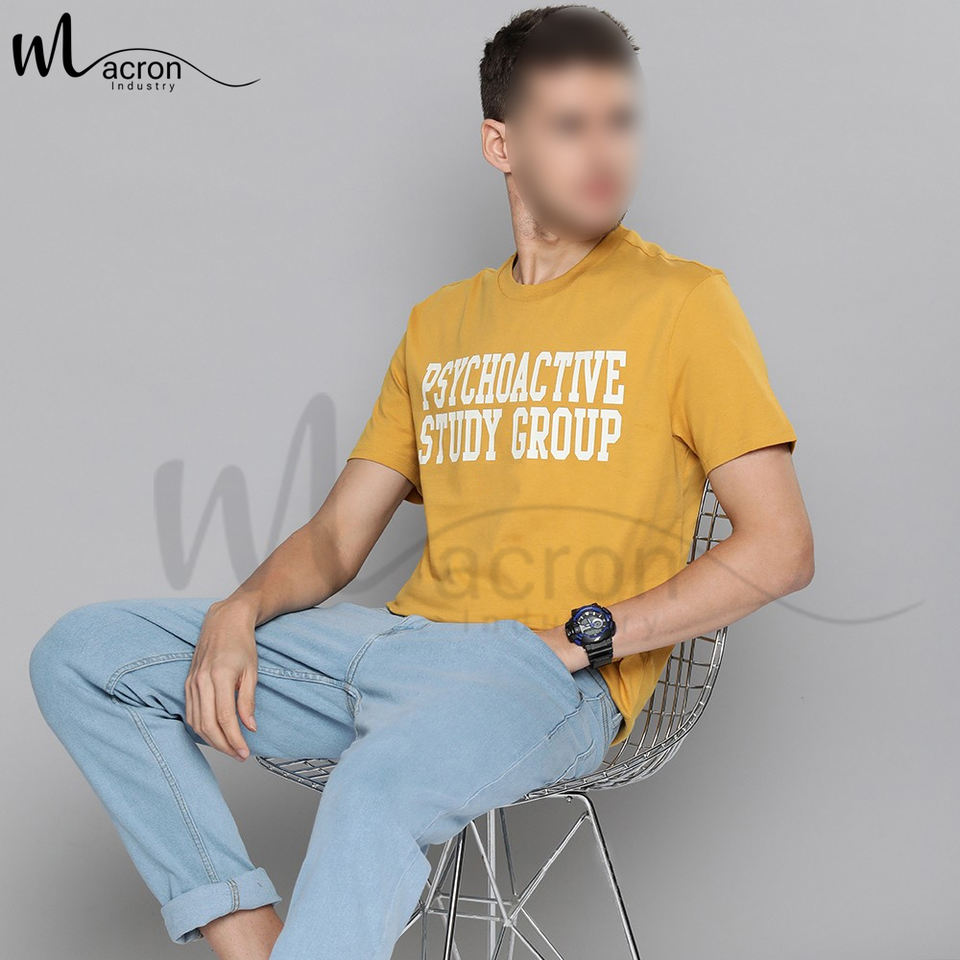 เสื้อยืดถักสำหรับผู้ชายพิมพ์ลายกราฟิกสีเหลืองและสีขาวสีตัดกันใหม่ทันสมัย