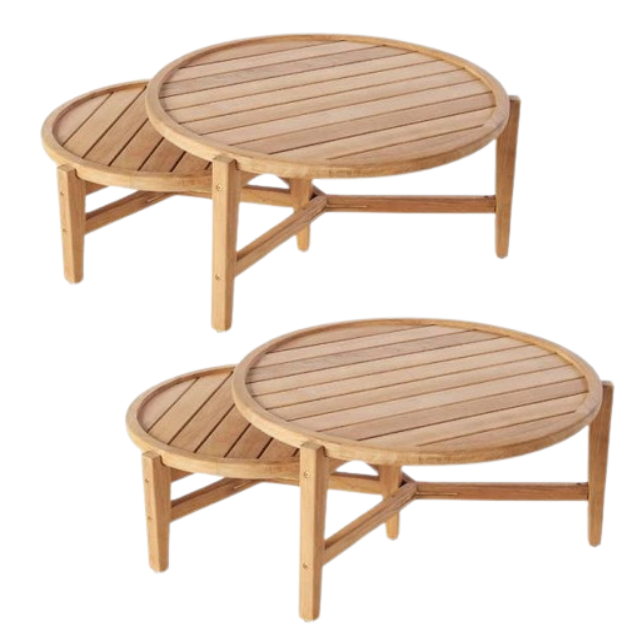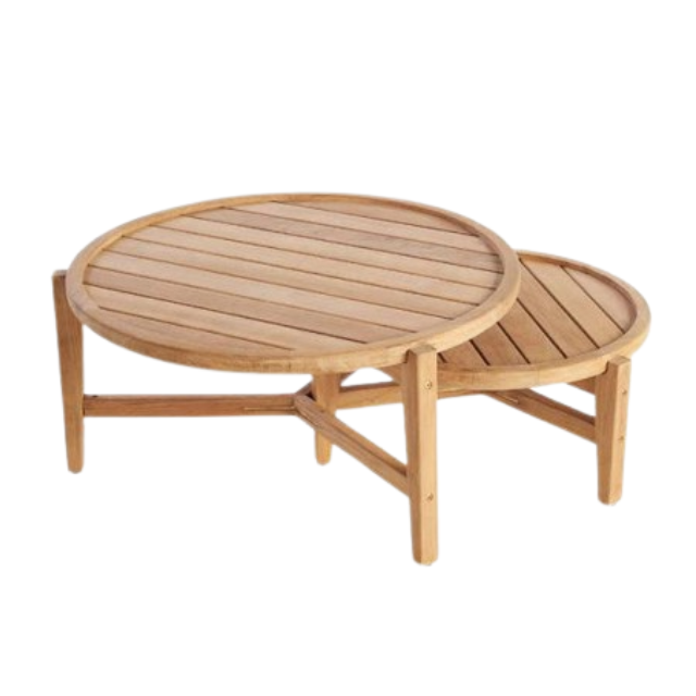 โต๊ะกาแฟไม้สักทรงกลมเฟอร์นิเจอร์สวนกลางแจ้งส่งตรงจากโรงงาน