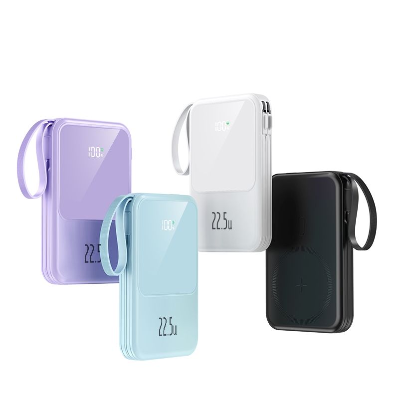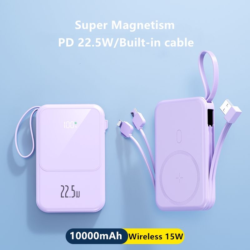 พาวเวอร์แบงค์แม่เหล็กแบบบาง10000มิลลิแอมป์ชาร์จเร็ว PD 22.5วัตต์พร้อมสายเคเบิล powerbank ไร้สาย15วัตต์สำหรับโทรศัพท์มือถือ