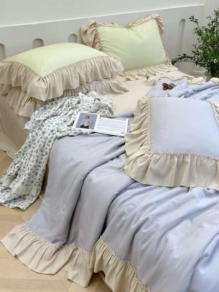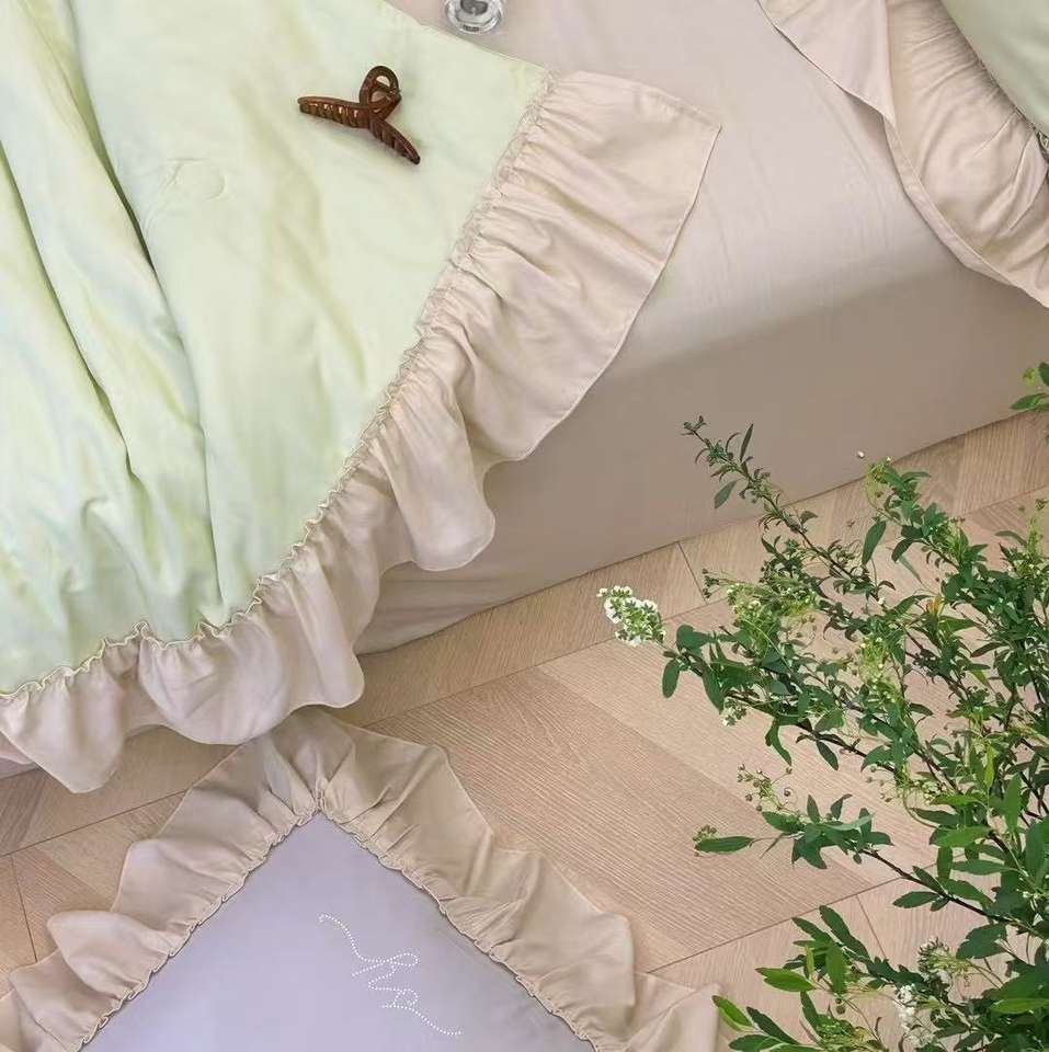 สินค้าใหม่ผ้าเทนเซลฝรั่งเศสลูกไม้แต่งระบายความรู้สึกเย็นสบายชุดผ้าห่มสี่ชิ้นสำหรับฤดูร้อน